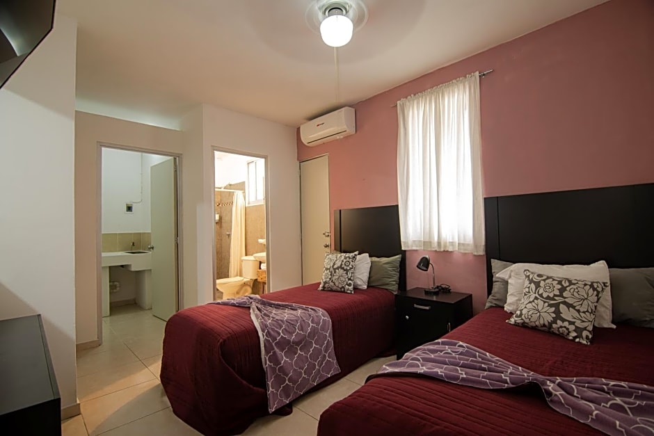 This is a two bedroom suite, with one double bed in each one. Features air conditioning, T.V. with cable channels and WIFI. The suite has a living room, dinning room and kitchenette.